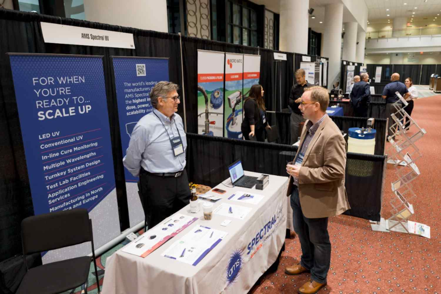 Exhibitor backdrop sizes are usually standardized so they fit well behind tables.