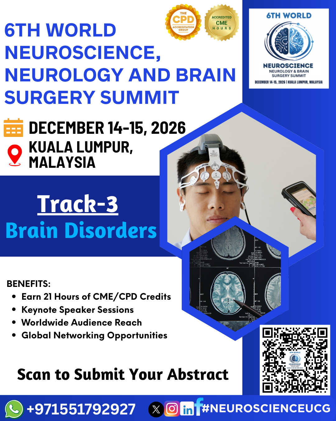 Sub Tracks Neurodegenerative Disorders, Cognitive and Psychiatric Disorders, Traumatic Brain Injury (TBI), Brain Tumors, Stroke and Cerebrovascular Disorders, Infectious Brain Disorders, Seizure Disorders and Epilepsy,Demyelinating...