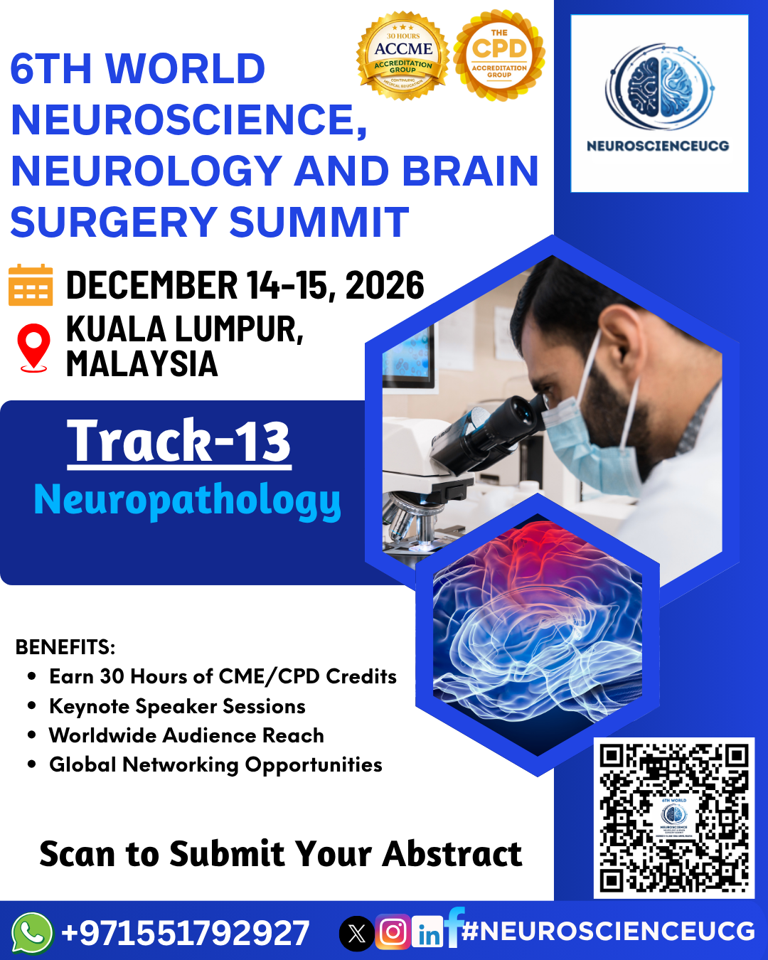 SUB TOPIC; Neurodegenerative Diseases, Vascular Neuropathology, Inflammatory Neuropathology, Neoplastic Neuropathology, Toxic and Metabolic Neuropathology, Neurogenetic Disorders, Developmental and Congenital Neuropathology, Traumatic Neuropathology Neuropathology is the...